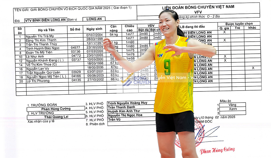 VTV Bình Điền Long An đã quyết định thay đổi danh sách VĐV tham dự cúp bóng chuyền Hoa Lư